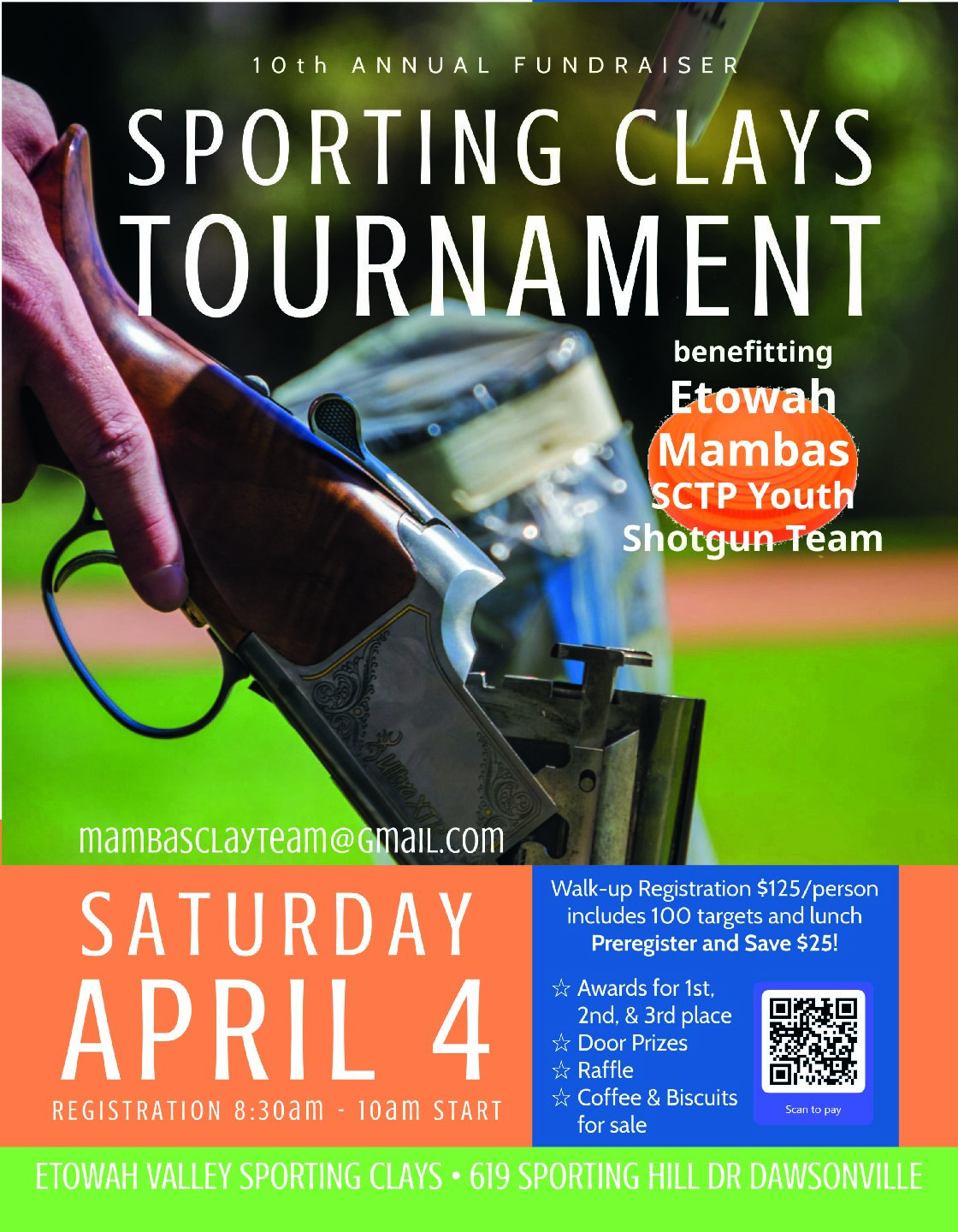 Etowah Valley is proud to invest in local youth through our Scholastic Clay Target Program (SCTP) teams. The Etowah Valley Mambas and Fideles Christian School Rangers train and compete in a team-based environment, welcoming boys and girls from 4th to 12th grade.